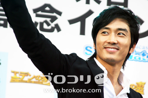 16時30分、公開記者会見が始まり、MCの紹介でソン・スンホンの登場が伝えられると、この日一番の悲鳴に近い歓声があがった。